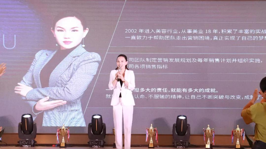 新妆集团商学院院长任玥羽任总对御唐王妃皇后套装-多肽逆龄焕颜嫩肤套盒的讲解,多重植物配方与科学配方的组合,以及多重复合植物的配方加上我们的逆龄科技创新,成就了御唐王妃品牌皇后系列。